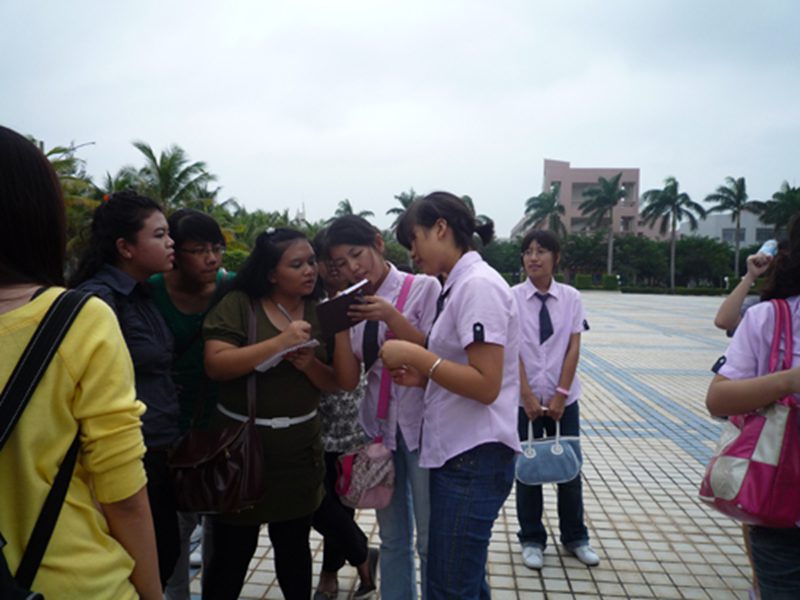 双方的各位同学围绕海南和新加坡的旅游业状况和两国员工的老员工活两个主题分别进行介绍和交流。公司由徐婧璇等3名同学,介绍海南景点、气候等,当话题围绕小吃展开的时候,远到而来的师生都很感兴趣,在提问和回答中,笑声不断。紧接着由周蓉等3名同学介绍了公司的学习生活、员工活动和课余生活。交流中,双方就两国的教育制度方面的差异进行了不同侧重的解释。当交流会接近尾声时,公司的同学表演了精心准备的节目。精彩的魔术赢得一阵阵惊呼和热烈的掌声;同学用歌伴舞《请到天涯海角来》,表达我们的欢迎之心和最真挚的情感。