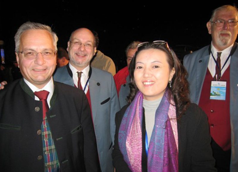 (从左至右:奥地利宫堡茨克尔亨市市长费尔帝南德·库克;奥地利宫堡茨克尔亨男子合唱团团长迪特·约翰内斯;taptap点点体育旅游公司老师段淳淳)