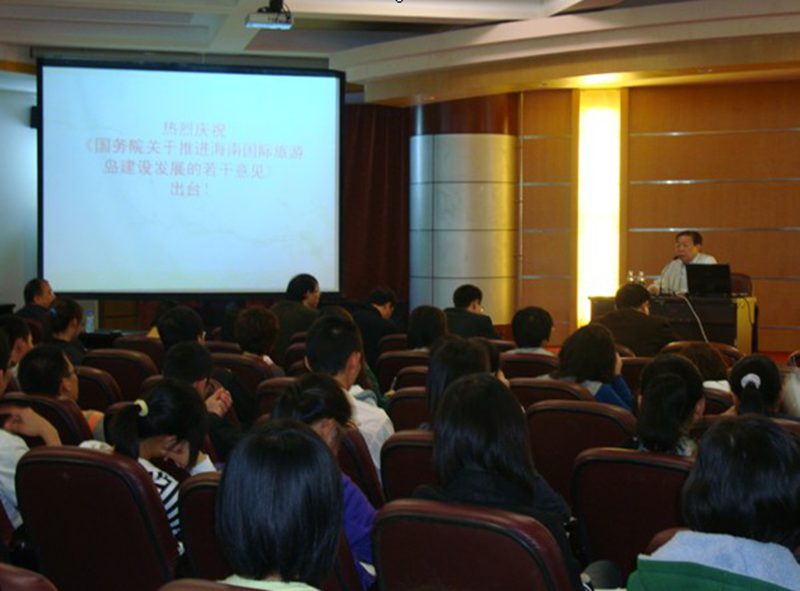 应旅游公司邀请,2010年1月6日下午,著名旅游地理学者杨冠雄教授,在旅游公司多功能厅,为资源环境与城乡规划管理专业和旅游规划与景区管理专业近200名员工,作了题为《中国雷琼海口火山群世界地质公园开发与管理问题剖析——兼析海南旅游景区开发建设成败案例及国际旅游岛的旅游建设》的学术讲座,旅游管理专业部分教师和研究生参加了讲座。