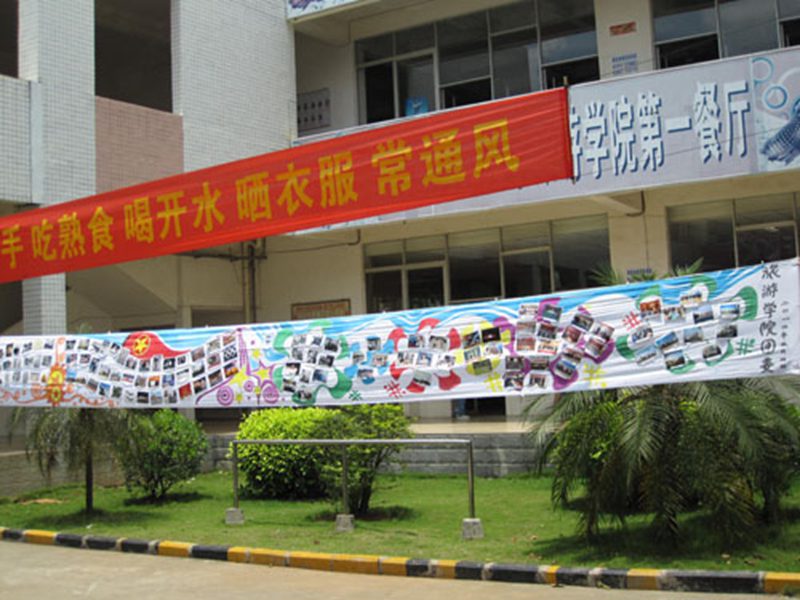 在另一侧的旅游公司食堂前,我们用百余幅“五四”运动的老照片向同学们再现了这一伟大运动的历史场景。本次图片展共展出图片近100余幅,主题为“弘扬五四精神,肩负历史使命”,共由两部分组成:第一部分为“五四运动”历史。通过近50余幅珍贵的历史文献照片和详细的文字说明,着重介绍了五四运动的历史背景、经过和重要意义,将90年前这场波澜壮阔的爱国运动再现于参观者面前。第二部分为“青春的足迹”。重点介绍了我国现代化的重要成就。一幅幅灰色的照片记录着沧桑的岁月,一行行字再现着历史。虽然没有漂亮的装饰、鲜艳的色彩但是很多路过的同学们纷纷驻足,仔细观看,细细品味。此次图片展不仅是要同学们回顾历史,在历史中受教育。