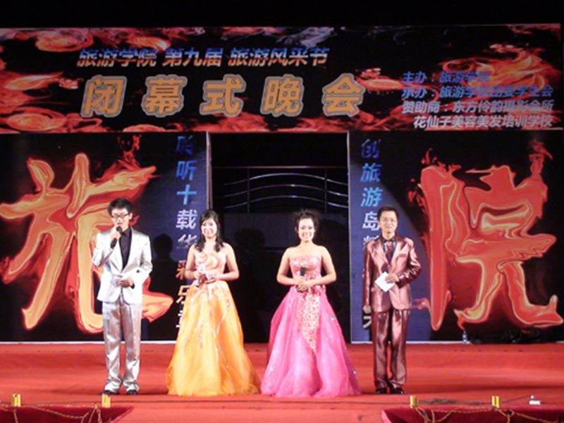 闭幕式晚会在sent912乐队的《这个冬天》的激昂歌声中拉开了序幕,动感的舞蹈立即将现场的气氛活跃起来。随后,旅游公司王琳经理为第九届旅游公司闭幕式致辞,她说:“在海南建设国际旅游岛上升为国家战略之后,旅游公司将调整培养人才的目标,从以前的培养旅游业精英人才转向培养领导型人才转变。”同时她也对同学们寄予深切的期望,同时祝福旅游公司越来越好。