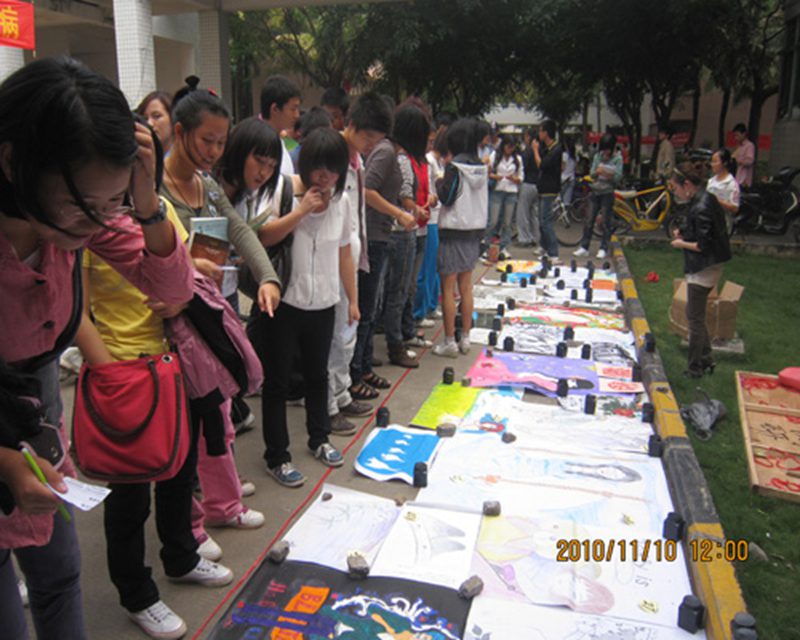 初赛的现场投票活动于11月10日在旅游公司食堂门前展开,一幅幅生动活泼、立意新颖、内容丰富的作品吸引了很多书画爱好者驻足欣赏,并为自己心仪的书画作品投票。纷纷到来的同学们把场地围得水泄不通,不管是否认识,大家都以书画会友,相互讨论着各幅作品。在场同学欣赏作品的同时还相互交流了各自在学习书画方面的心得和经验。迎新书画大赛的现场投票活动得到了同学们的积极的响应和高度的支持。在大家积极的参与下,选票由400张加印至700张,充分体现了本次初评的广泛性和公平性。展出作品中有精巧细致的剪纸,有雄浑苍劲的软笔书法,有可爱喜人的动漫,让同学们沉浸在浓浓的文化氛围中。