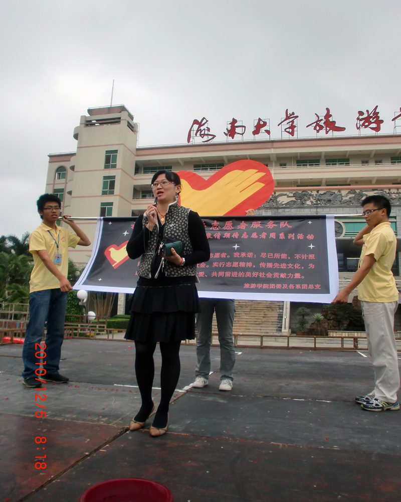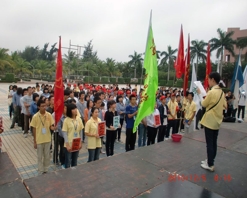 2010年12月5日是国际志愿者日。在今天这重大的日子里,由旅游公司团委实践部组织的taptap点点体育旅游公司团委志愿者活动周启动仪式暨誓师大会于今天上午在旅游公司三教广场正式开始。参与此次誓师大会的有旅游公司市场营销系辅导员林春梅老师、旅游公司志愿小组成员、院际交流志愿者小组的同学以及旅游公司团委成员。