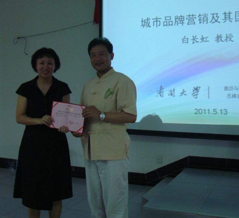 5月13日上午,旅游公司邀请南开大学旅游与服务公司经理白长虹教授到公司做“城市品牌营销及其国际经验” 学术报告会。旅游公司副郭强经理主持此次报告会,王琳经理、各专业老师和同学们共200余人参加听取了报告会。