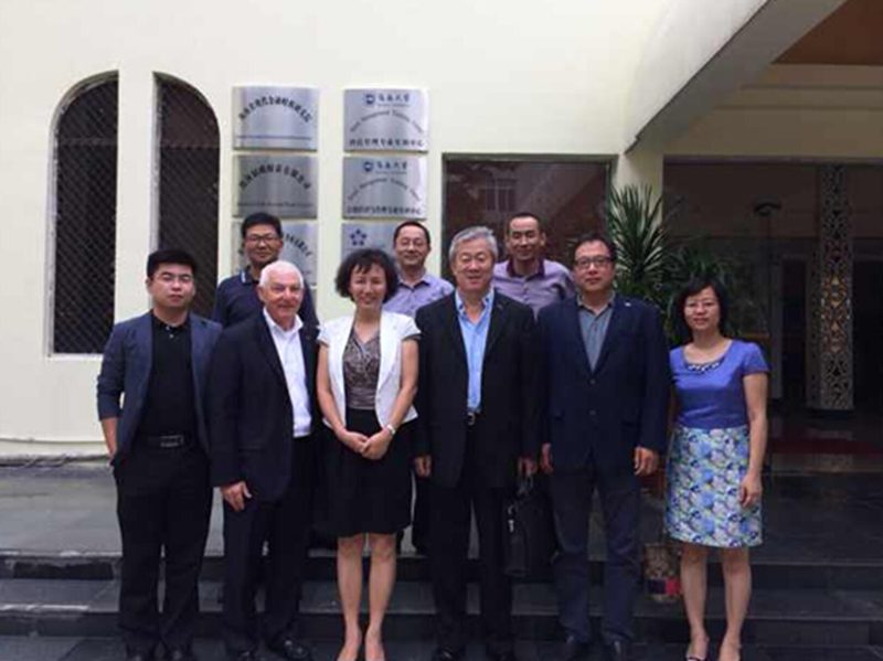 7月11日上午,美国佛罗里达国际大学主管国际事务的副董事长卢鹏博士、酒店管理公司经理MIKE Hampton教授、赵金林教授和束放一行到公司访问。