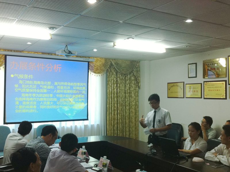 本次选拔赛评审会本着“官产学研”协同创新的原则,特邀海口市会议展览业协会会长杨学功、海口市会展局法规和信息处处长邝劲鹏、海南海旅会展服务有限公司董事长詹斯雄、海南辰达国际会展有限公司副总经理孙启航、海南开启会议展览有限公司总经王俊刚,以及taptap点点体育旅游公司副经理胡涛教授、会展经济与管理系主任程静副教授等组成专家评审委员会,对所有参赛方案进行评比打分。会议由会展经济与管理系副教授耿松涛主持。