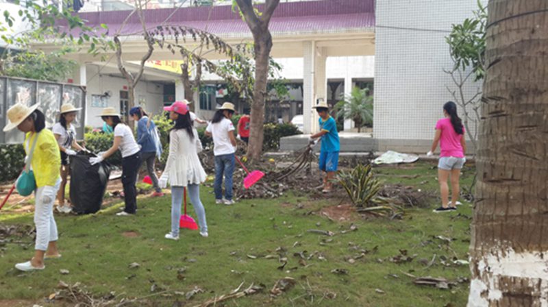 首先清点公司因18日超强台风“威马逊”造成的损毁,组织各部门、各科室动手打扫公司办公区域卫生,员工公寓公共通道卫生,在旅游公司党委金晟副书记带领下,公司辅导员与30多名员工志愿者一起投身于清扫校园工作。清扫范围以旅院公司23~26栋宿舍楼周围的花坛、草地及马路为主。