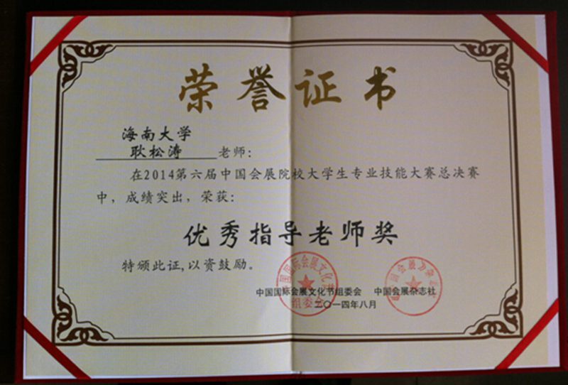 第6届中国会展院校老员工专业技能大赛一等奖