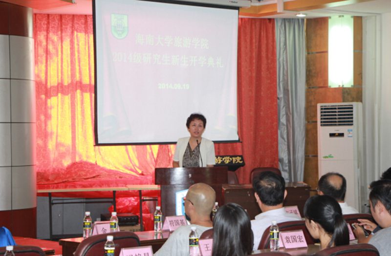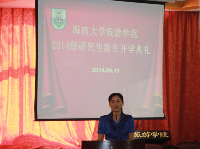 2014年9月19日上午,旅游公司2014级研究生开学典礼在公司多功能厅隆重举行。参加典礼的有全体院领导、全体硕士研究生导师、研究生教学秘书与辅导员、2014级旅游管理、技术经济及管理、外国语言学与应用语言学等三个专业的全体新生。典礼由副经理孙建军主持。