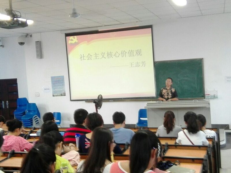 首先,进行党课第一项,全体起立,奏唱《国际歌》。紧接着进行党课第二项,王志芳教授讲解《社会主义核心价值观》。王教授分别从什么是核心价值观,为什么践行核心价值观,践行核心价值观应该怎么办等三个方面进行讲解。从国家、社会、个人三个层面讲解核心价值观是什么。由举例中日两国人民的素质对比来讲为什么要践行核心价值观。在讲解“对于践行核心价值观应该怎么办”时,王教授要求我们从我做起,从身边小事做起。本次课程结束,主持人对本次党课作了总结,并对上次交作业情况做了简单的说明。