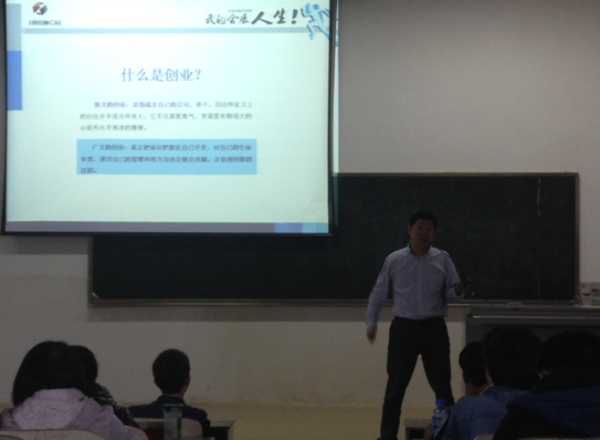 周大寨董事长为同学们带来了题为“我的会展人生” 的讲座。在讲座中,周总首先抛出一个问题:会展业能否产生大富豪?紧接着,周总结合自己的人生经历,讲述了他是怎样走上会展业的、如何在会展业中打拼到现在成为海南展览企业第一位,以及今后怎样带领团队继续向前等。周总把他的成长经历划分成三个阶段:从大学毕业到混沌迷茫;接触会展、走进会展、艰苦创业、发展上升阶段;2015年以后直到未来。他以其独到的思维和见解向同学们阐述会展业未来的发展方向,以及什么样的人适合从事展览行业,最后发出“人生如展,展如人生”的感悟。