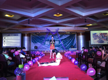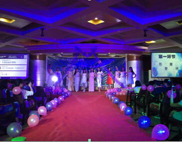 此次大赛共分为四个环节:形象展示、产品展示、才艺展示、情景模拟。在比赛正式开始前,现场大屏幕播放了选手们之前在白沙门拍摄的外景VCR,让我们看到了舞台下面生活中的他们不为人知的可爱一面。在观众的欢呼声和掌声中,主持人宣布比赛开始。选手们个个身着华丽的礼服,在T台上迈着优雅的台步,将自己靓丽完美的一面展现给评委和现场观众。选手们富有魅力的展示引发了现场的一个小高潮,比赛随之进入第二环节。