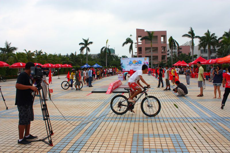 此次活动以“自行车”为道具,围绕自行车进行与自行车相关的所有表演节目,此次海选共分为“快乐自由show”和“智勇冲关show”两部分,在自由show部分,极为专业的选手凭借其精湛的车技尽情展示车王魅力,他们的单轮上台阶,飞车过人等精彩表演把可看性、娱乐性、技巧性及表演可塑性融为一体,赢得场下观众阵阵掌声与惊呼;而在智勇冲关部分,选手们在以“简约时尚,低碳环保”为理念设计的长30米的赛道上,同样展示着自行车的无限魅力,参赛选手中年龄最大的已58岁,而最小的也只有4岁,有外国友人前来助兴,有专业的自行车协会的选手,有海大莘莘学子,更有爷爷带着可爱的孙子共同参赛,他们自信、乐观、勇于挑战,他们更把热爱挑战、热爱绝活炫彩、热爱自行车的热情在赛场尽情挥洒,场上气氛紧张热烈,场下亦是惊呼不断。活动于下午五点接近尾声,海大海选赛中产生的10名优秀的选手将于16日参加复赛。