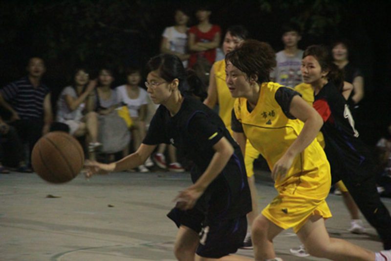 第三节双方都派上了女队员。女队员比赛时的身体接触也是相当激烈。市场队的10号队员连突带投赢得了场上的阵阵掌声。加油声此起彼伏。
