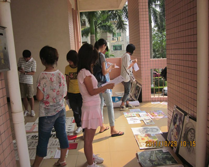 同学们正在对书画投票