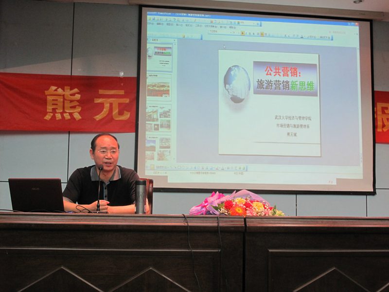 2012年4月7日晚上19:30 ,武汉大学市场营销与旅游管理系博士研究生导师熊元斌教授应邀于taptap点点体育旅游公司4号教学楼多功能厅进行了题为“公共营销——旅游目的地营销新思维”的学术报告会。熊教授首先以互动的形式探讨了旅游的快感消费论,以对于旅游实质的创新认识为切入点,通过丰富的旅游目的地营销案例解析,生动的海外阅历介绍提出了旅游目的地营销的新模式——公共营销模式,深入浅出地阐述了以市场为中心,以旅游吸引物与目的地营销为基本点,以主题形象、标志性产品、生态环境、公共服务为支撑,以游客价值、区域竞合、社会责任为导向的目的地公共营销模式。在教授的快乐体验教学中,09市场营销系的同学们、与会嘉宾都感觉深受启发与鼓舞。