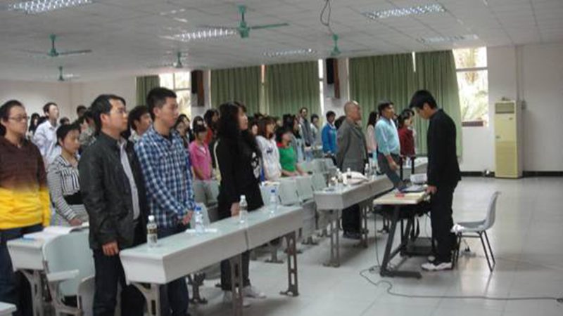 一首激励了无数有志之士的《国际歌》拉开了此次开班典礼的序幕。在庄严激昂的歌曲结束后,新党员代表冯清哲同学发言,他谈起上党课培训班的感受及对党员角色的认识;员工代表发言后,金晟副书记致辞,他从一名合格的党员应具备的素质出发,送给同学们九个字“从哪来、来干啥、走出去”。简单的几个字让在场的每一个人都思索着如何成为一名合格的党员。在金老师讲话后,林老师接着向大家明确了党课的纪律与要求。