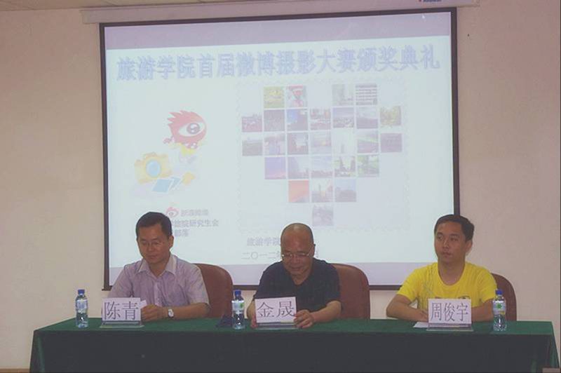 5月3日19:40,由旅游公司研究生会主办、由中国电信海口分公司赞助的旅游公司首届微博摄影大赛颁奖典礼在8教202隆重召开,出席本次颁奖活动的有旅游公司党委副书记金晟,中国电信营销分公司渠道运营中心副经理周俊宇,旅游公司研究生会指导老师陈青。