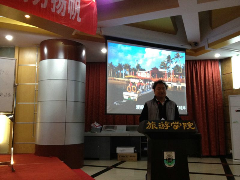 月5日晚上,taptap点点体育旅游公司2012-2013学年度冬季小学期课程正式拉开帷幕。来自海南陵水猴岛旅业发展有限公司董事长代国夫先生在旅游公司多功能厅进行了一场别开生面的关于海南旅游业发展的讲座。讲座由旅游公司副经理陈扬乐教授主持。