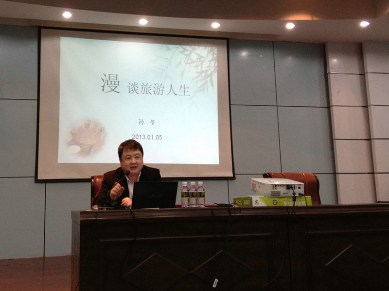 新年伊始,元月6号下午,三亚南山大小洞天发展有限公司董事长孙冬先生应taptap点点体育旅游公司邀请为公司10级旅游规划与景区管理方向本科生进行了一场精彩生动的主题为《漫谈旅游人生》的冬季小学期课程讲座。