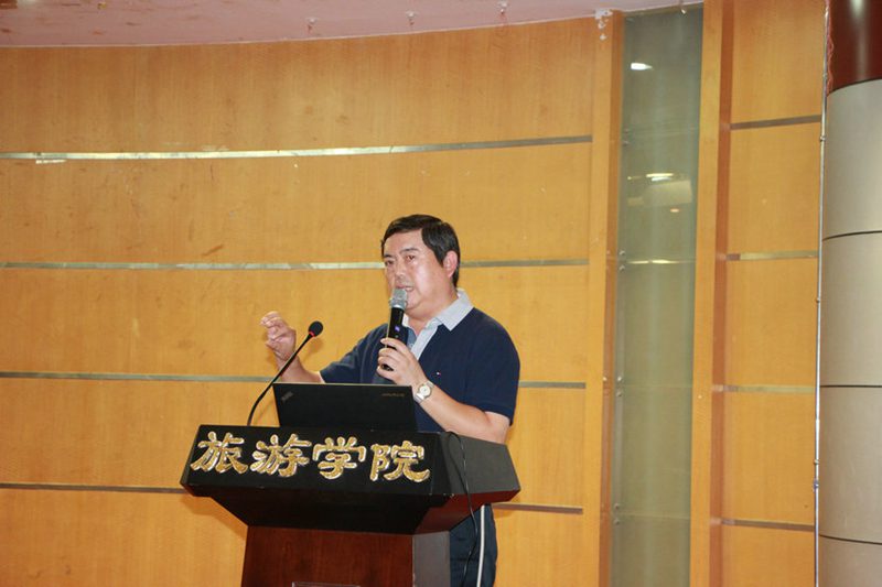 张教授通过PPT的展示和现场的详细讲解为同学们带来了一次精彩的讲座。首先,张教授为同学们介绍了世界、国内、海南酒店的发展史,从世界上最初的第一家酒店到中国酒店,乃至海南的第一家宾馆——琼苑宾馆。其次,张教授采用了最通俗易懂的受教方式为同学们讲解了酒店星级评比的要求和流程,并且通过图片为同学们介绍了世界白金级酒店和中国的三大白金酒店。最后,张教授为现场提问的同学回答了关于博彩酒店的发展趋势。