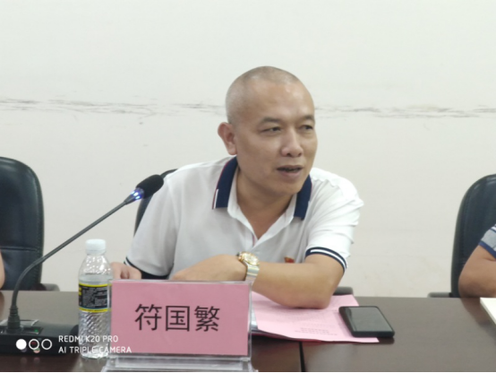 符国繁书记介绍了海南职业技术公司旅游公司基本情况,分享了基层组织党建和员工工作经验。