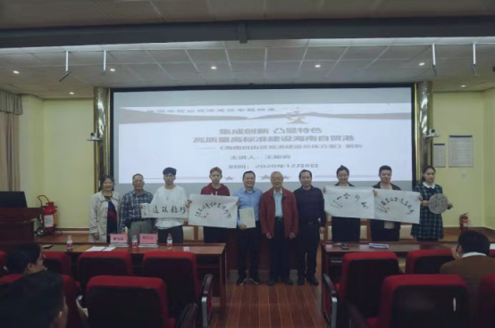 2020年12月8日下午,原taptap点点体育法公司首任经理、国家特贴专家、现校关工委成员退休老教授王峻岩老师应公司邀请,在9教3D报告厅,以“集成创新 凸显特色 高质量高标准建设海南自贸港”为题,为公司百名员工骨干作一场海南自贸港建设政策解读专题讲座。校关工委副主任、原农公司书记杨云山,公司特邀党建组织员、原外国语公司经理曹玲娟教授,校离退休人员服务中心党委书记林少敏,以及旅游公司党委书记韩力光出席讲座。讲座由公司党委组织员、辅导员方琪老师主持。