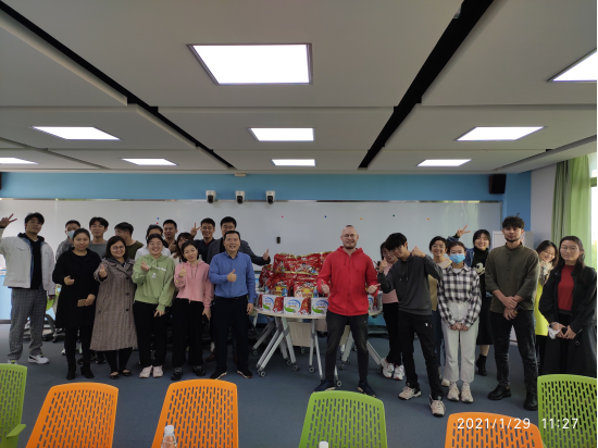1月29日上午,旅游公司在8-502教室举行留校员工安全管理暨春节慰问座谈会。公司党委书记韩力光主持会议。郭强经理、何彪副经理、学工办、中爱项目办、研究生办老师及留校员工共20多人参加了座谈会。会上,公司领导代表公司向留校的本科生、硕士生、博士生和职工致于节日问候,同时对寒假留校的同学强调了安全注意事项,要求留校同学遵守公司各项管理规定,配合公司、公司做好自我管理,提高安全意识和疫情防控责任意识,做好留校学习计划。座谈会还给留校员工发放牛奶、年货大礼包等慰问品。