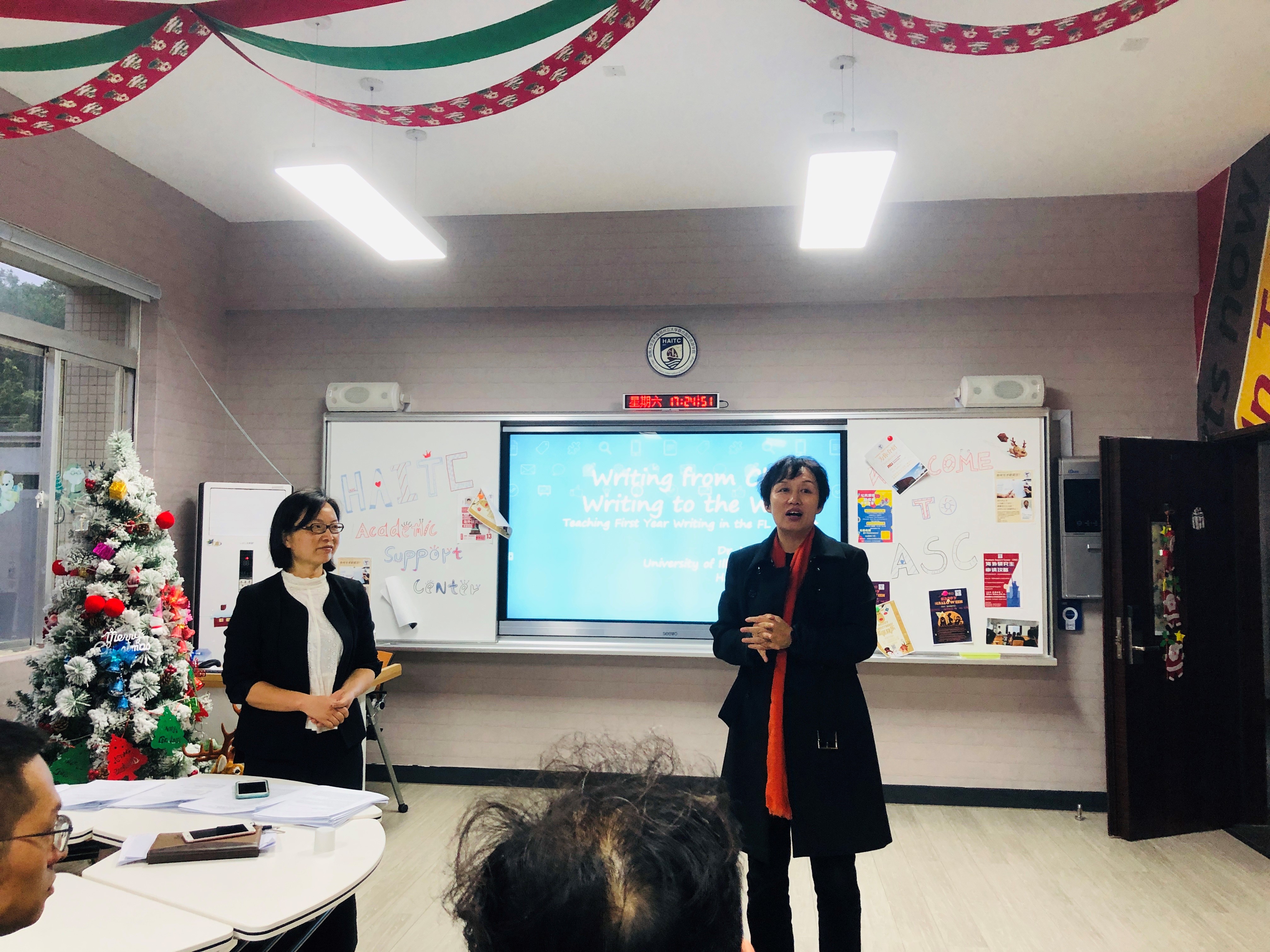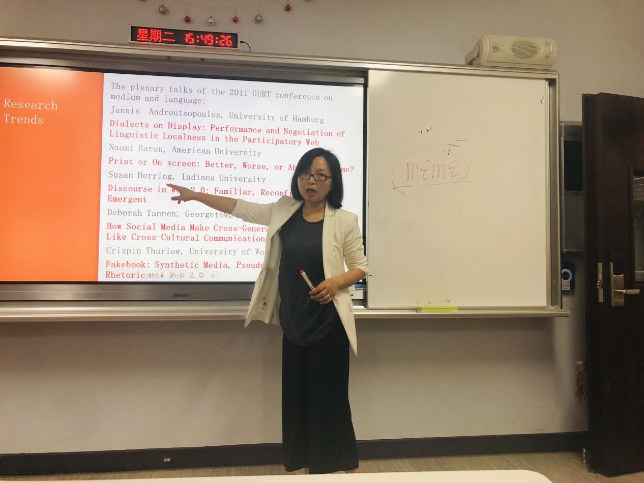 受taptap点点体育国际交流与合作处、taptap点点体育旅游公司、国际旅游公司邀请,伊利诺伊大学向雪花副教授于12月22日莅临公司,在田家炳楼202室为旅游公司外国语言学及应用语言学、外国语公司外国语言文学硕士研究生讲授《应用语言学国外前沿进展》课程。该课程为期8天(2018年12月22日-29日),旅游公司、国际旅游公司部分老师也到场听课。