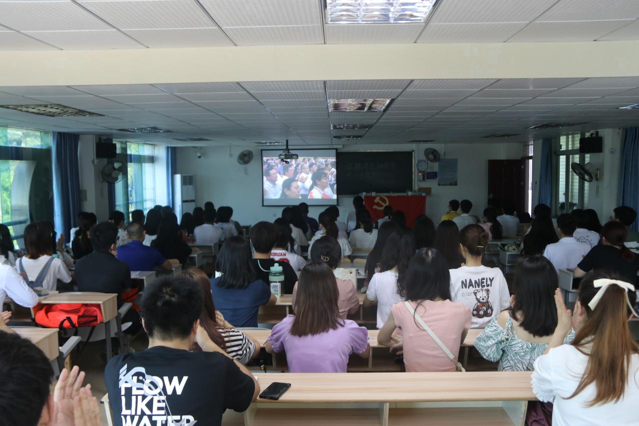 7月1日上午8时,庆祝中国共产党成立100周年大会在北京天安门广场隆重举行,中共中央总书记、国家主席习近平发表重要讲话。旅游公司领导、党支部书记、教师党员、员工党员、入党积极分子等师生代表100余人分别在公司8教205会议室、8教305教室集中收看庆祝实况。