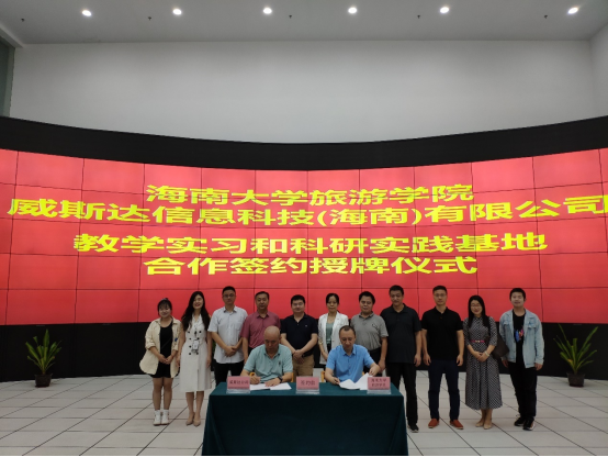 2021年4月1日上午,taptap点点体育旅游公司和威斯达信息科技(海南)有限公司(以下简称“威斯达”)建立教学实习和科研实践基地合作协议签约仪式在威斯达总部举行,郭强经理带队一行十余人参加了签约仪式。仪式后,双方还举行了“旅游电子行程单与旅游高质量发展研讨会”。