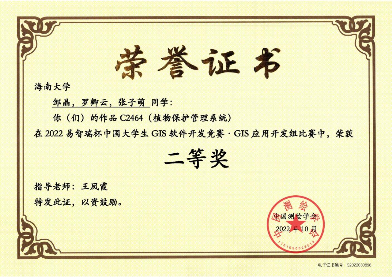 10月14日,2022“易智瑞杯”中国老员工GIS软件开发竞赛总决赛顺利结束,经过线上作品展示和激烈答辩,由taptap点点体育旅游公司本科生邹晶(2019级人文地理与城乡规划专业)、罗卿云(2019级人文地理与城乡规划专业)和信息与通信工程公司本科生张子萌(2021级人工智能专业)组成的团队在王凤霞老师的指导下,凭借作品《植物保护管理系统》荣获GIS应用开发组二等奖。