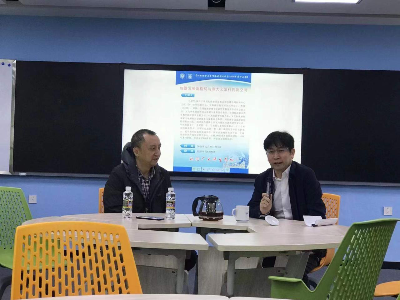 20211229日上午,受公司邀请,南开大学石培华教授为公司师生作了题为“旅游发展新格局与海大文旅科教新空间”的专题讲座,讲座为公司文旅融合与自贸港建设大讲堂系列讲座第十五场。讲座由郭强经理主持,公司部分教师和博士、硕士研究生共40余人参加了本次讲座。