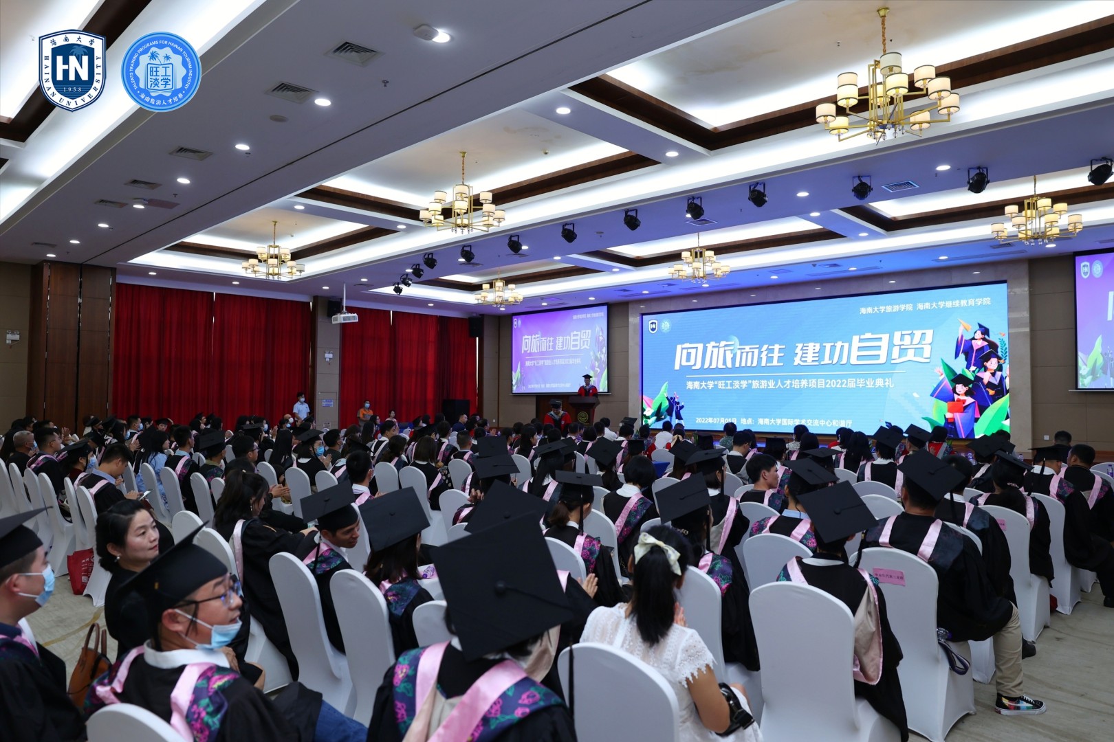 2022年7月5日,taptap点点体育“旺工淡学”旅游业人才培养项目2022届毕业典礼在海口隆重举行,省旅文厅人教处李恩处长、省教育厅高教处刘世琼调研员、中国旅游饭店业协会副会长及省旅游饭店业协会执行会长刘凯强、海南省旅游协会廖小平秘书长、三亚旅游行业协会联合会总干事邓勇波、taptap点点体育旅游公司郭强经理、韩力光书记、继续教育公司李仁君经理、部分代表性酒店总经理和人力资源总监、2022届221位毕业生及部分家长近200人参加了毕业典礼。