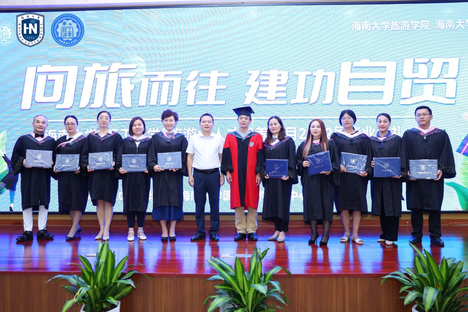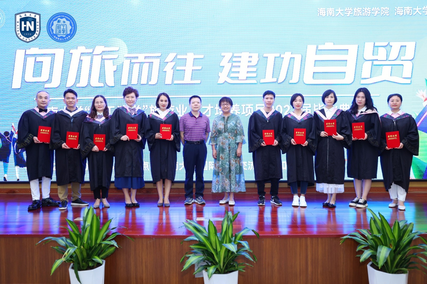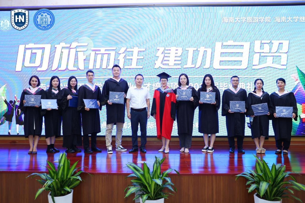在欢乐的乐曲声中,taptap点点体育旅游公司和继续教育公司的院级领导先后为2022届毕业班的总经理班、海口班、三亚班的毕业生代表颁发了毕业证书。