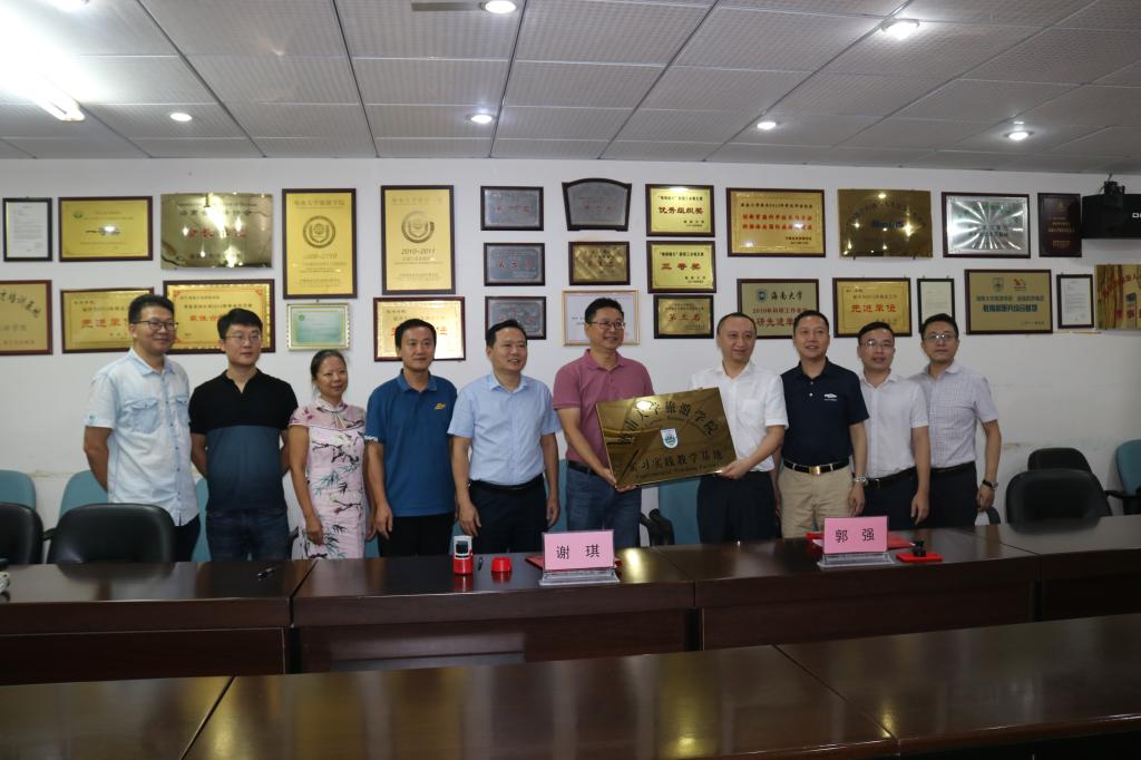 座谈会最后,双方共同签署了战略合作框架协议,旅游公司郭强经理为南海之巅文旅公司颁发了教学实习实践基地牌匾。
