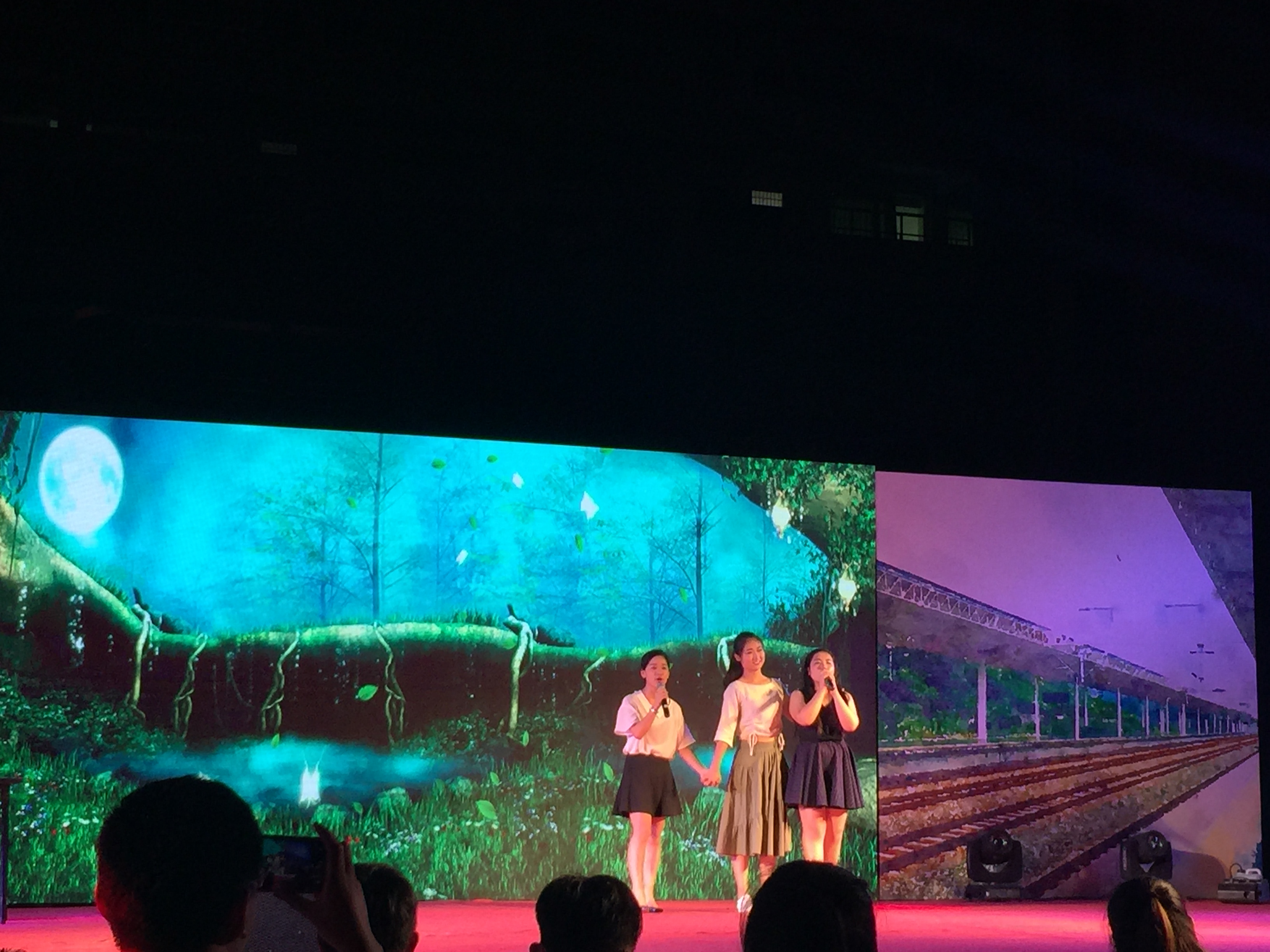 晚会上不仅有精彩的节目,还有优秀毕业生分享宝贵经验。2011级旅游管理(文科实验班)的优秀毕业生张楠青向即将毕业的2013级全体员工分享她学习和生活上的经历经验。在谈及她去非洲支教的经历时,她说道:“不要将别人的帮助当成是理所应当的,要时常感恩。”她还提出两点期望,首先,学习是永无止境的,我们应该不断扩充自己;其次,要不忘初心,“不要忘记自己曾经是什么样的小孩,也不要忘记自己曾经想成为什么样的大人”。