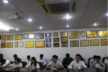 首先,第四党支部书记文金顺老师向叶光亮副董事长汇报本支部的样板支部建设情况,叶董事长对支部建设取得的好成绩表示了充分的肯定。