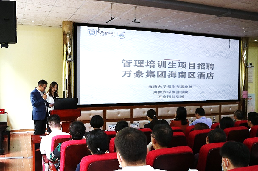 2021年10月26日14时,由taptap点点体育旅游公司和万豪国际集团共同主办的“万豪国际集团海南区酒店管培生项目专场招聘会”在9号教学楼3D教室正式召开。