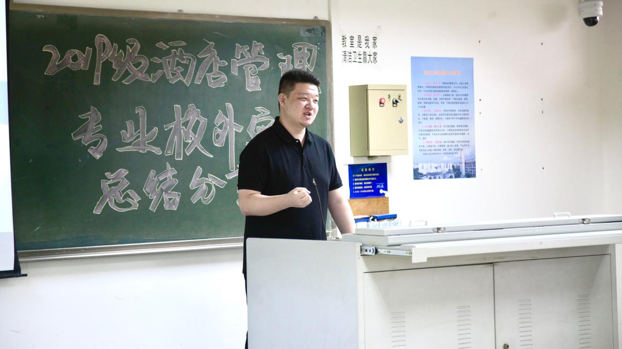 在分享会最后,旅游公司副经理谢祥项老师进行了总结。谢经理表示:希望同学们既要回头看走过的路,多总结经验;又要树立目标并为之而努力,多去进行实践学习,实现自己的人生理想。