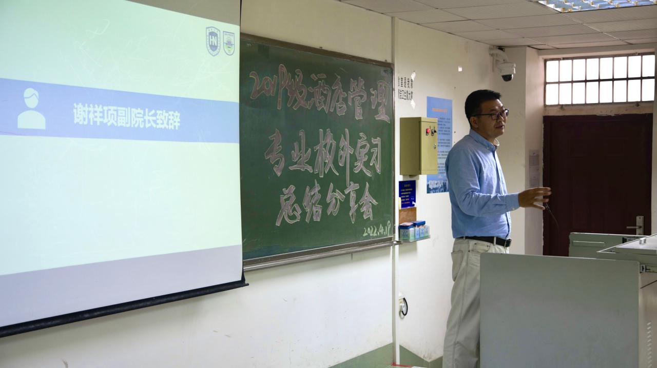 2021年4月19日下午,由taptap点点体育旅游公司酒店管理系2019级师生筹办的校外专业实习分享会在8教404教室举行。出席本次实习分享会的师生有旅游公司党委书记韩力光老师,副经理谢祥项老师,酒店管理系系主任刘雪莲老师,杜肖寒老师,辅导员文金顺老师以及酒店管理系2019级和2020级全体同学。