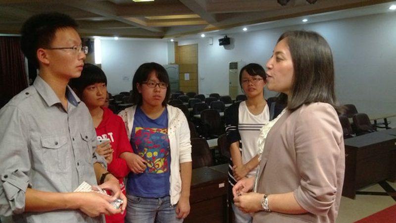 整场讲座持续了两个半小时,期间旅游公司报告厅一直座无虚席,并有员工在后排站着听讲。参加师生无不被刘琛博士的讲座所感染,在讲座的最后,刘琛博士谈及我国国家形象宣传时动情地留下了眼泪,使员工意识到了身上的重担,明确了前进的方向。到场师生十分珍惜这次交流的机会,讲解结束后,积极踊跃地向刘琛博士提出了自己的问题,刘琛博士一一耐心有条理地为大家做了解答,并给同学们推荐了一些课外读物以便扩展学习。刘琛博士反复强调要有学术意识和精神,全身心的投入到自己的专业领域,就一定能够有所作为。同学们纷纷表示刘琛博士魅力十足、讲座内容丰富、听后感觉意犹未尽、从中受益匪浅。刘琛博士也表示愿与旅游公司就跨文化交际在旅游领域的应用研究进行多方面的合作。