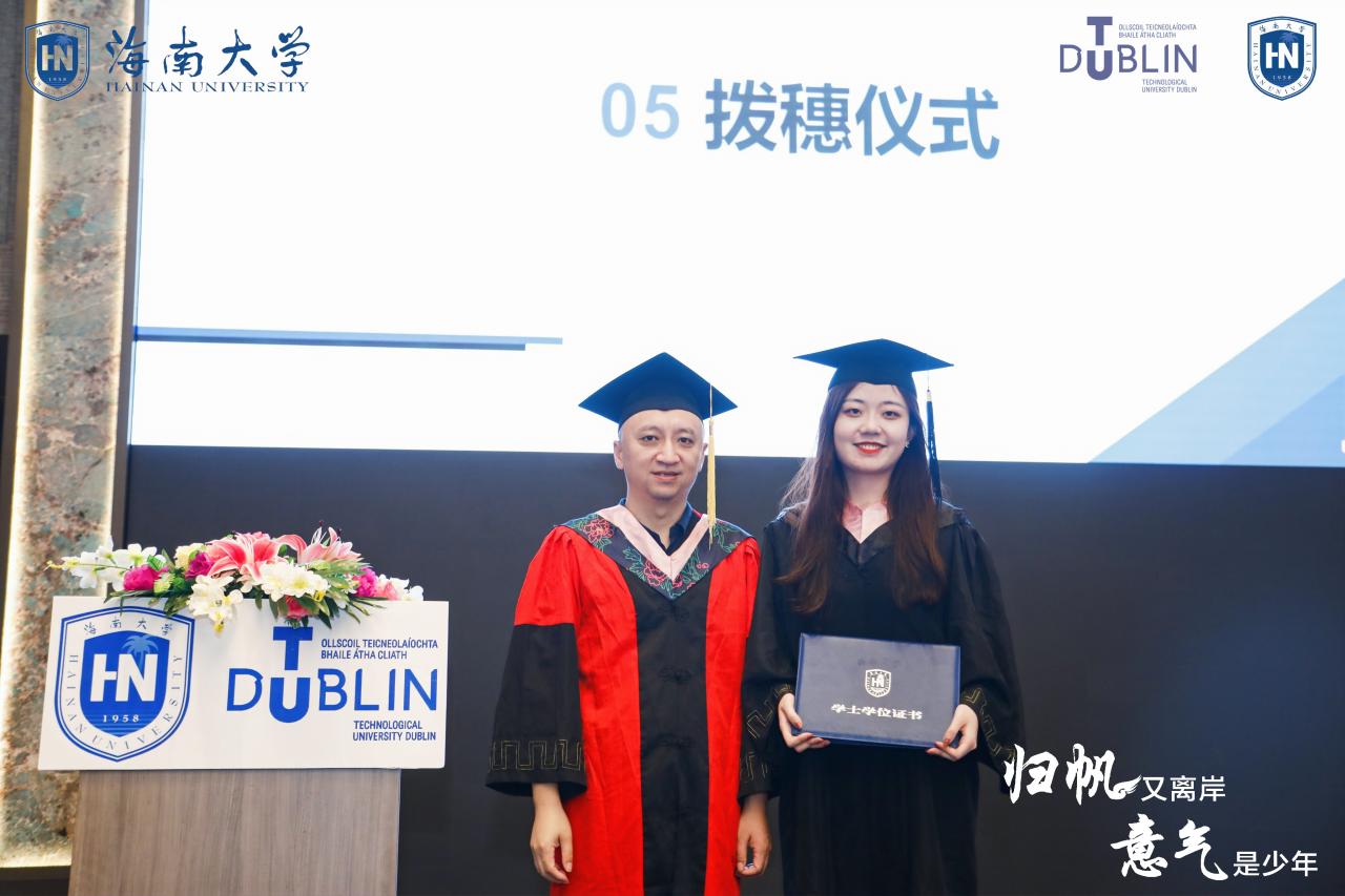 接着,由郭强经理为参加典礼的毕业生逐一拨穗正冠、颁发毕业证与学位证,这示意着他们顺利完成本科学习,即将开启人生新篇章。