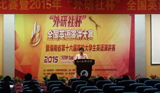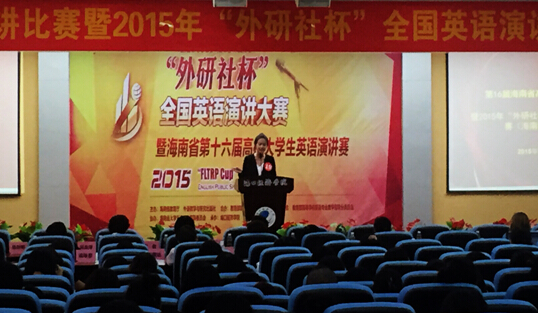 10月23日上午八点半,在海南省教育厅,海南省外语教学指导委员会的支持下,第十六届海南省高校老员工英语演讲比赛暨2015年“外研社杯”全国英语演讲大赛(海南赛区复赛)在海口经济公司隆重举行。taptap点点体育旅游公司应外系主任冯艳昌副教授和外教Andrew带领公司两名同学参加本次大赛,用英语展现了旅院学子的风采和魅力。