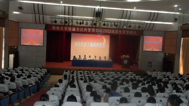 2012年9月4日上午8点,taptap点点体育政治与公共管理公司在原行政办公楼二楼报告厅隆重举行2012级新生开学典礼,经理安应民,党委书记王默忠,党委副书记段捷频,副经理江红义,行政办主任陈秀彬,各系主任,及广大教职工出席;2012级的290多名新生和部分家长、老生代表一同参加。大会由公司党委副书记段捷频主持。