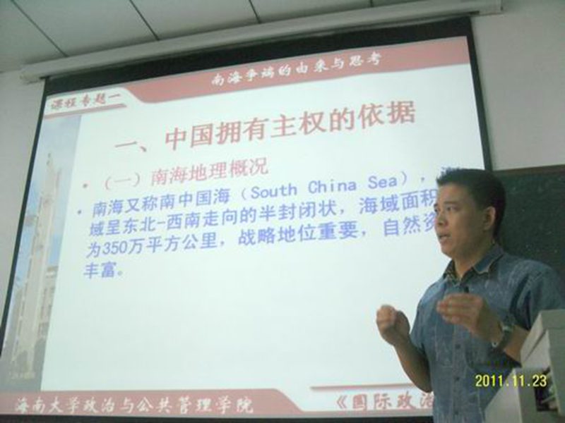 周伟老师在此次观摩会上用一节课的时间讲授了国际政治学课程“南海争端的由来与思考”一章内容。他的讲课娴熟自然、条理清晰、课件丰富,受到了与会领导老师的好评。同时,大家也对此次课程教学展开了热烈的讨论,纷纷提出一些改进意见,例如课程内容权重的把握、教学技巧的讲究、教学内容的进一步充实、教学态势的掌控以及教学板书的注意事项,周伟老师虚心听取了意见和建议,与会老师也表示这些讨论意见也使自己受益匪浅。