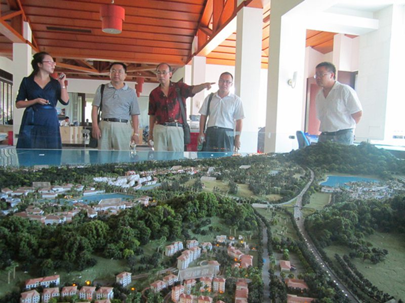 该公司人力资源部主管张汉敏女士向公司到访领导和教师详细介绍了该公司的发展概况及未来前景。双方共同参观了石梅湾度假区规划展览馆及模拟景观图,并现场考察了该景区各工程项目的建设力度和施工进度,还围绕着企业的人才要求、培训体系、职业路径、用工需求、实习安排、薪酬待遇以及招聘事宜等方面的内容进行了深入地洽谈与细致地交流,初步达成了在该公司建立公司老员工就业实习基地的意向,为提高公司毕业生就业质量,深化校企合作奠定了坚实的基础。
