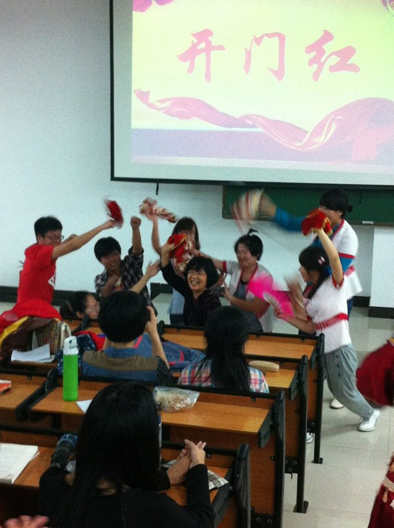 这次,同学们以各省为单位,组成十个家乡团队,用独特的美学思维和美的方式,分别诠释、演绎了十个地区的家乡风景美、人物美、民族风俗美。如东北大秧歌、二人转展现了热情淳朴的民风;西南民族舞、嘹亮山歌展现了西南人民的柔美细腻;西北的秦腔、话剧展现了中原百姓的豪气奔放;巴蜀的短剧、问答展现了四川人们的热情泼辣;海南富有热带特色的竹竿舞更是把课程引向了高潮。这一些列带有地域特色的表演与极具吸引力的节目,不仅调动了同学们对美的追求与演绎的热情,更是让观众们欣赏美的同时深深体会到美的内涵。