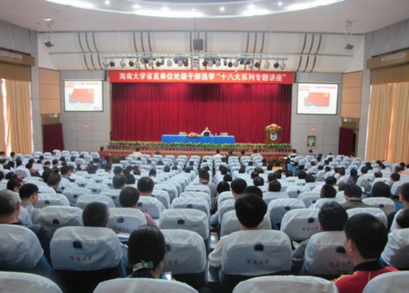 在十八大胜利召开之后,公司宋增伟教授、庞京城教授先后为来自省直单位的近400名处级干部选学学员,就“学习和贯彻十八大精神,推进海南国际旅游岛建设”的主题,举办多场主题讲座。11月27日,宋增伟教授应邀为公司经济与管理公司教职员工详细解读了十八大文件精神。12月4日和5日下午,宋增伟教授还先后应邀为公司外国语公司、应用与科技公司(儋州校区)的师生作了主题为“学习和贯彻党的十八大精神,推进海南国际旅游岛建设”的辅导报告。