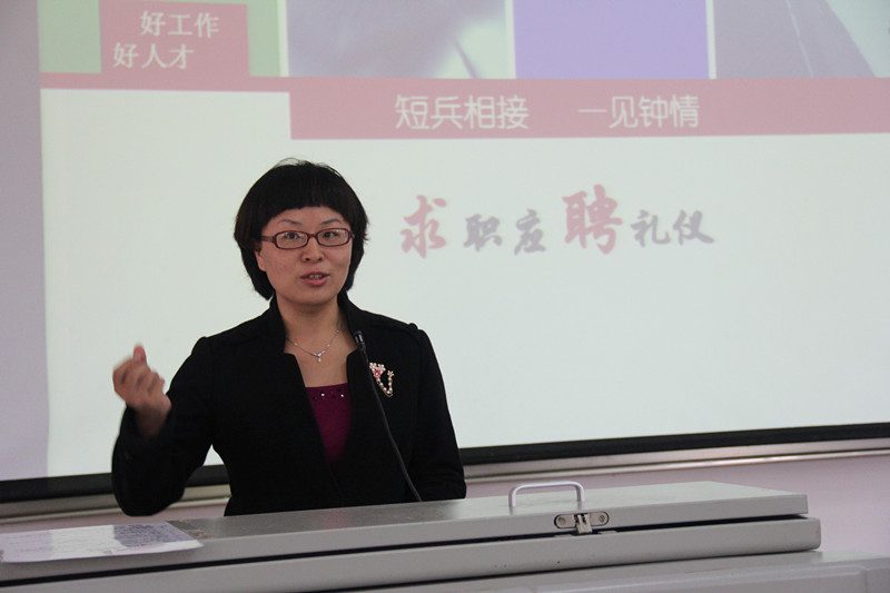 同时,王芳副教授在为毕业生作求职应聘礼仪培训时,用独特的见解与深厚的礼仪知识,让大家详细了解应聘者在求职中应该正确把握好的各种待人接物的基本规范和沟通技巧。在解说过程中,她用自己的出色的口才与优雅的姿态,集中展现了公关礼仪的独特魅力。
